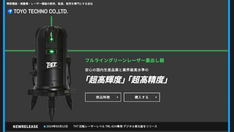 トーヨーテクノは国内自社工場での製造にこだわるレーザー墨出し器メーカーです。長年にわたるODM・OEMで培った技術を背景に、プロの現場で信頼される製品を多数展開しています。特にフルラインタイプのレーザー墨出し器は視認性・精度・耐久性を高いレベルで両立しており、建築・内装・設備工事など幅広い用途で活躍しています。国産ならではの丁寧な品質管理と、現場で使いやすい機能性が支持されています。